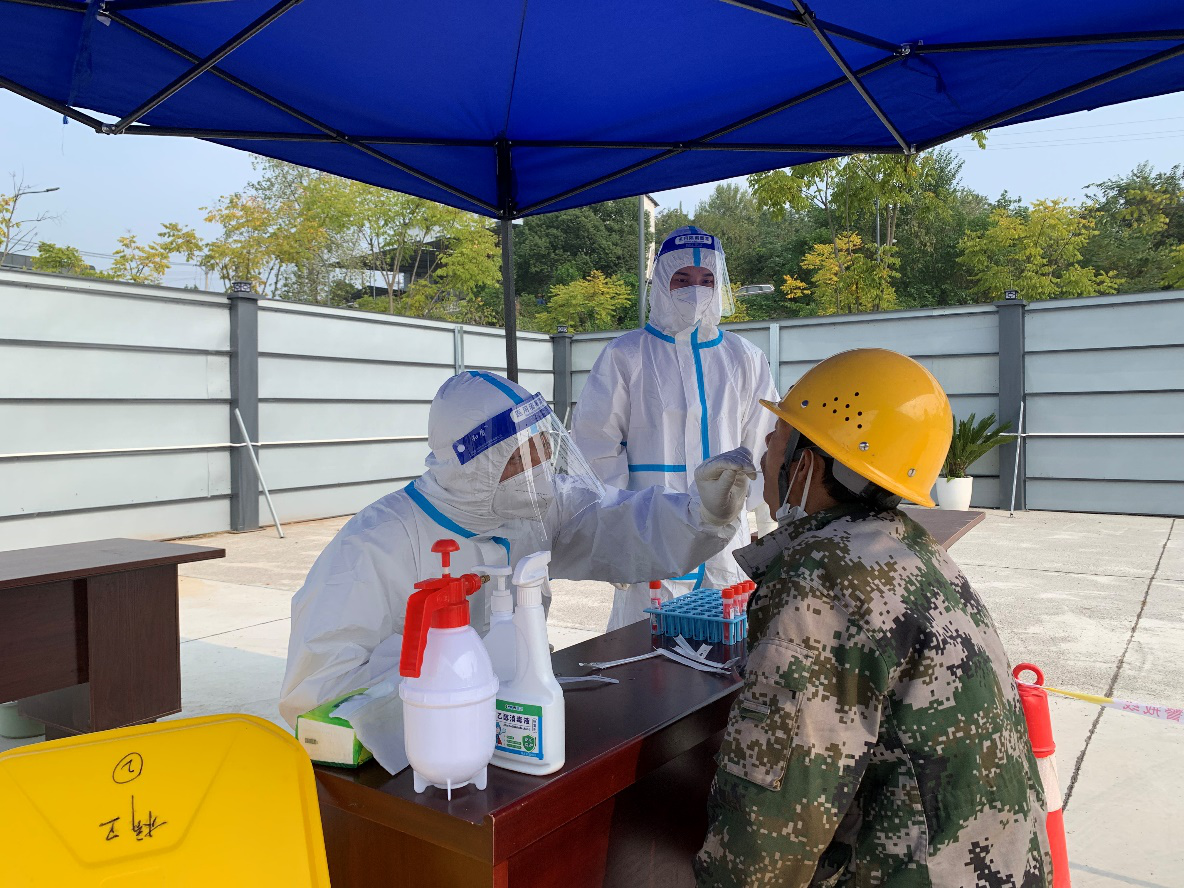 11月5日,為響應(yīng)區(qū)政府防疫部門有關(guān)防疫要求,全面筑牢疫情防線,切實保障全體施工人員的身體健康和生命安全,點盛公司聯(lián)動點軍區(qū)橋邊衛(wèi)生院和國機集團(tuán)在奧錦花園安置房(三期)項目部開展核酸采樣試點運行工作。取得核酸采樣合格證的奧錦花園三期項目安全員李懿、龍明超為本項目300余名工人順利的完成了核酸采樣工作。