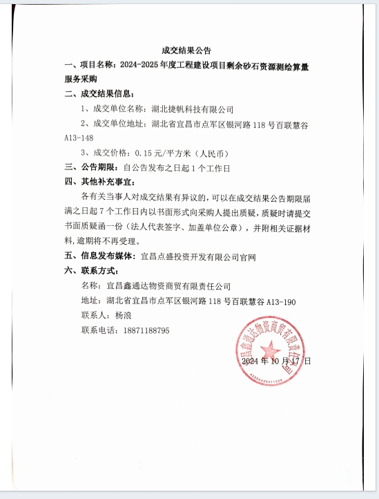 2024-2025年度工程建設(shè)項目剩余砂石資源測繪算量服務采購成交公告