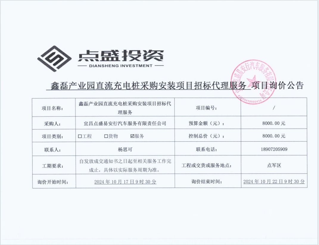 鑫磊產(chǎn)業(yè)園直流充電樁采購安裝項(xiàng)目招標(biāo)代理服務(wù)詢價(jià)公告