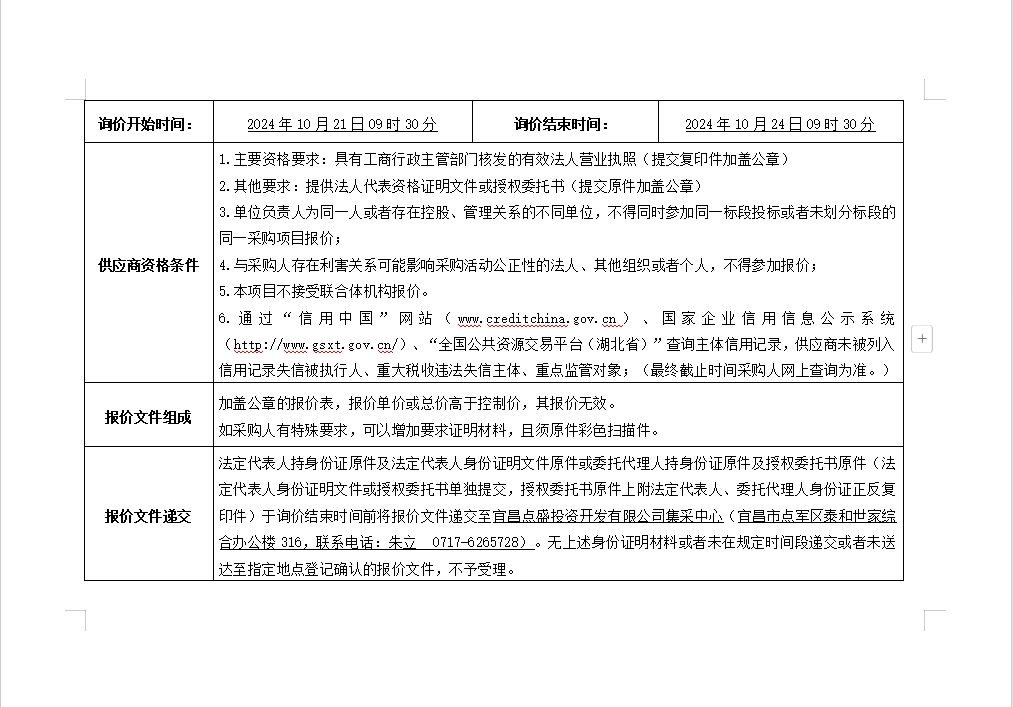 詢價(jià)公告