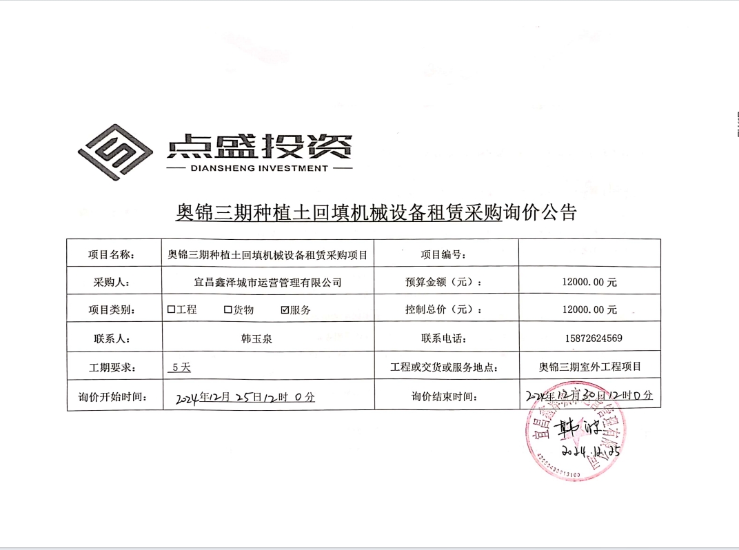奧錦三期種植土回填機(jī)械設(shè)備租賃采購(gòu)詢(xún)價(jià)公告
