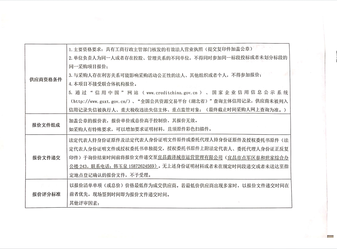 詢(xún)價(jià)公告