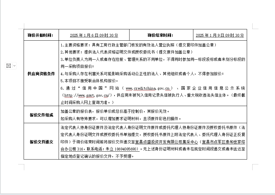 詢價(jià)公告