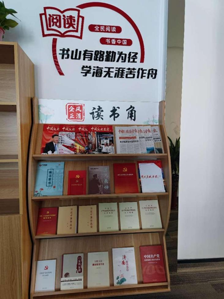 活動開展以來,產(chǎn)發(fā)企管集團各權(quán)屬企業(yè)高度重視,積極謀劃,認真部署,在黨員活動室、會議室及公共辦公區(qū)域等選擇適當位置,因地制宜創(chuàng)建各具特色的廉潔讀書角。讀書角內(nèi)放置黨史類、黨紀法規(guī)類、反腐倡廉類及紀檢監(jiān)察類期刊等讀物,為干部職工提供了一個了解黨風廉政建設(shè)、學習時政及黨紀法規(guī)、掌握中央八項規(guī)定精神、體驗廉潔文化、感悟廉潔力量的重要窗口。讀書角周邊張貼“書香致遠、清廉潤心”“書香育廉、閱以修身”等各類廉潔文化宣傳標語,營造了濃厚的廉潔氛圍。