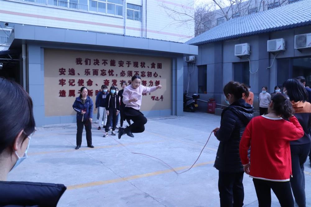 賽場上,參加趣味文體比賽的6支參賽隊的隊員們個個精神抖擻,摩拳擦掌,躍躍欲試。趣味文體比賽分為四項,包括跳大繩、雙腿夾球接力、蹲跳接力和穿針引線。四項比賽考驗的是大家的團(tuán)隊意識和默契配合程度。隊友們之間相互鼓勁加油,拼盡全力為自己的隊伍取得好成績而努力拼搏。隨著比賽的激烈進(jìn)行,賽場上一片沸騰,加油聲此起彼伏。