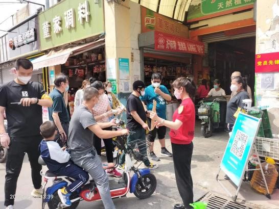 為確保鳳凰山路壹號商城疫情防控工作落細(xì)落實,新匯成公司采取以黨員帶群眾的形式,動員全體職工參與疫情防控。五一節(jié)假日期間,全體職工堅守崗位,嚴(yán)格執(zhí)行“雙檢一測一登記”流程,對進場的所有人員進行“雙碼”查驗、測量體溫并進行追本溯源信息登記,每日對進出場的200余輛車輛進行消毒。