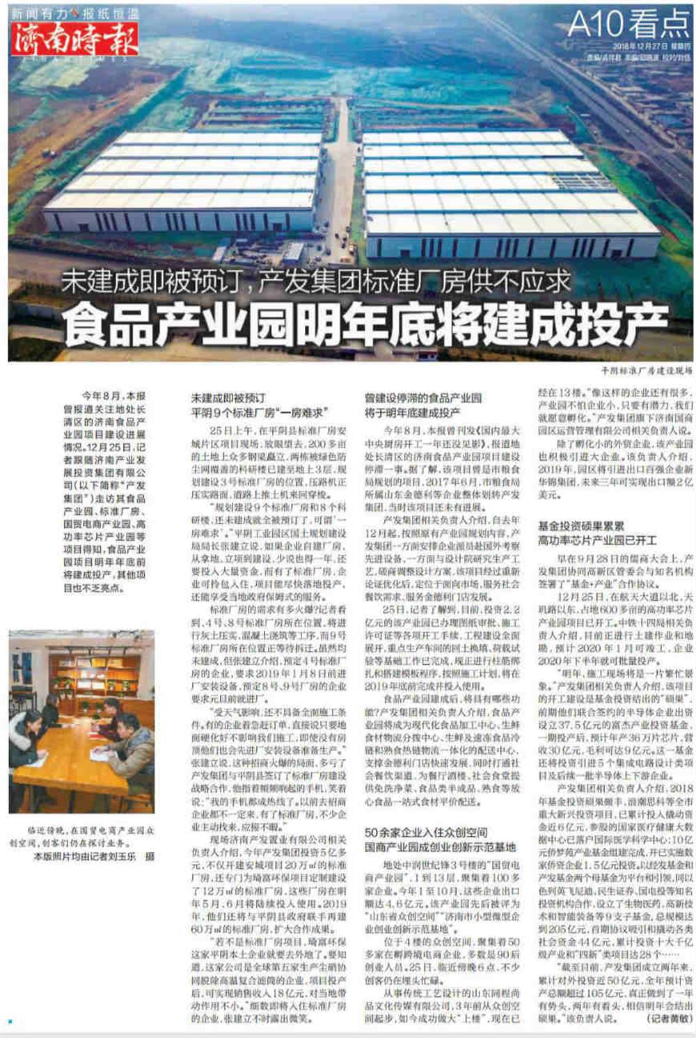今年8月,本報曾刊發(fā)《國內(nèi)最大中央廚房開工一年還沒見影》,報道地處長清區(qū)的濟南食品產(chǎn)業(yè)園項目建設(shè)停滯一事。12月25日,記者跟隨濟南產(chǎn)業(yè)發(fā)展投資集團有限公司(以下簡稱“產(chǎn)發(fā)集團”)走訪其食品產(chǎn)業(yè)園、標準廠房、國貿(mào)電商產(chǎn)業(yè)園、高功率芯片產(chǎn)業(yè)園等項目,得知食品產(chǎn)業(yè)園項目明年年底前將建成投產(chǎn),其他項目也不乏亮點。